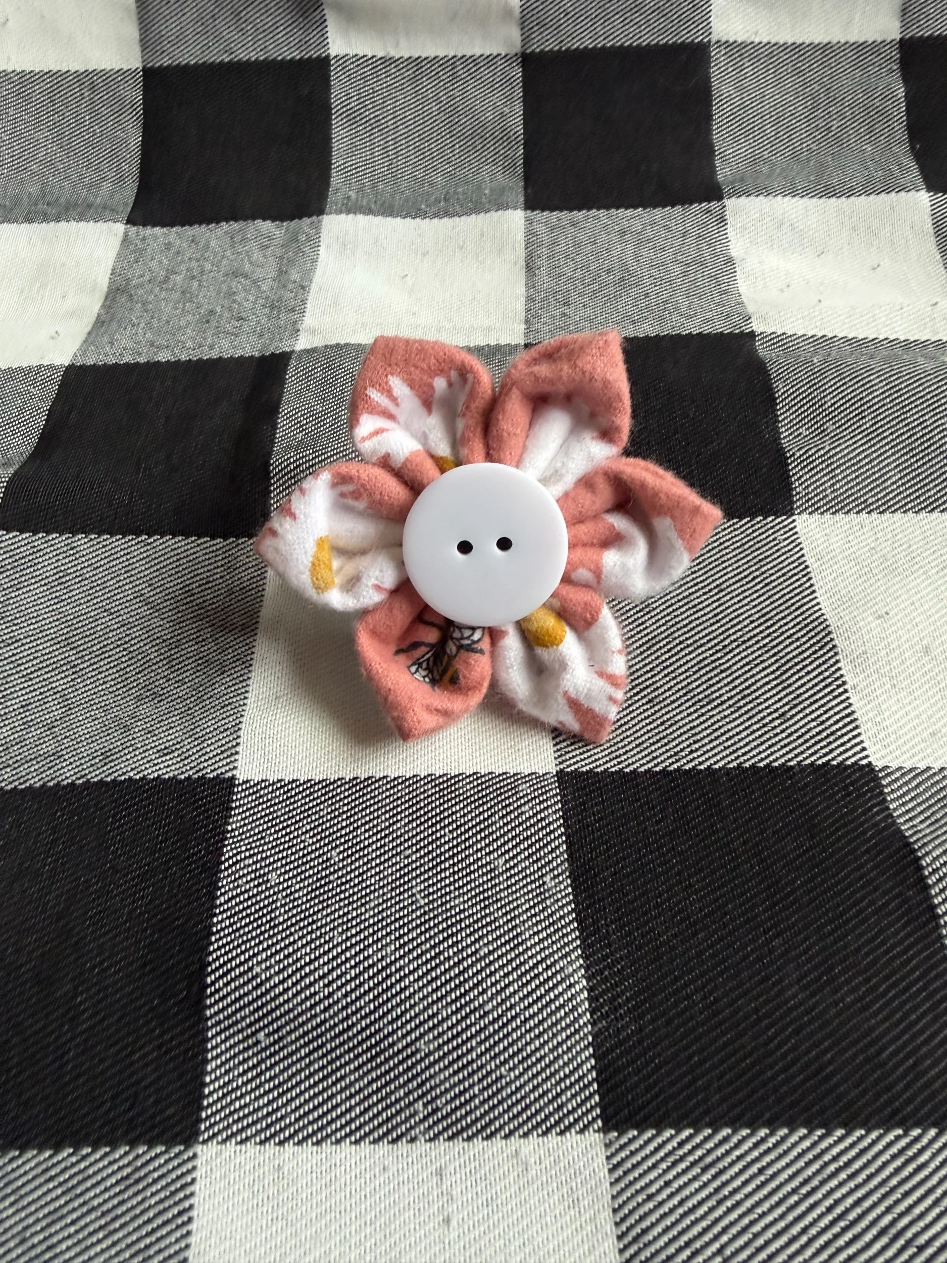 Image 1 of 1 Pink Bee Flower $5.00 This flower Velcros around pets collar. Will fit around up to a 2 inch collar. The flower itself is 3 inches wide. Add To Cart Added! This flower Velcros around pets collar. Will fit around up to a 2 inch collar. The flower itself is 3 inches wide.