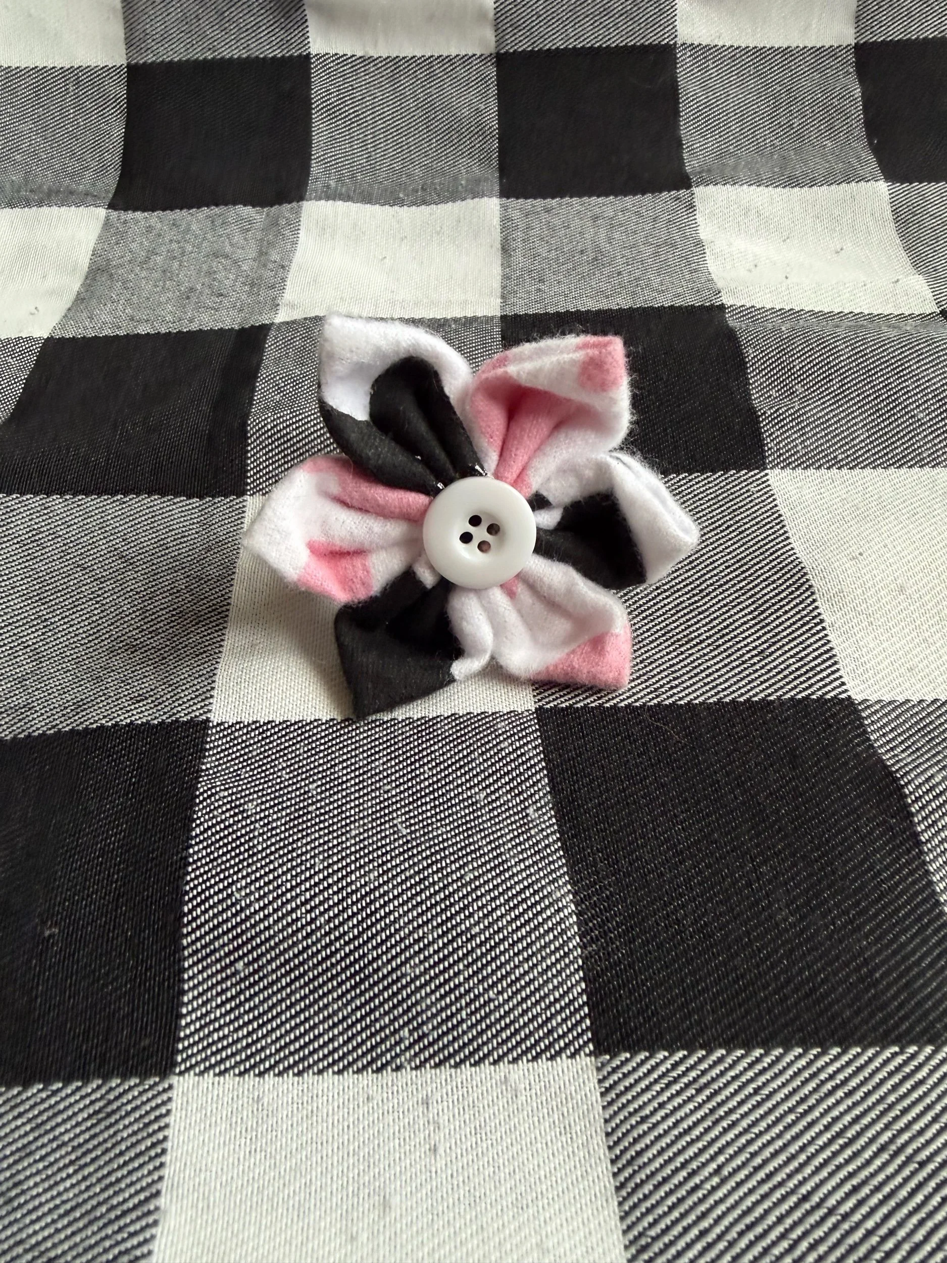 Image 1 of 1 Pink Cow Flower $5.00 This flower Velcros around pets collar. Will fit around up to a 2 inch collar. The flower itself is 3 inches wide. Add To Cart Added! This flower Velcros around pets collar. Will fit around up to a 2 inch collar. The flower itself is 3 inches wide.