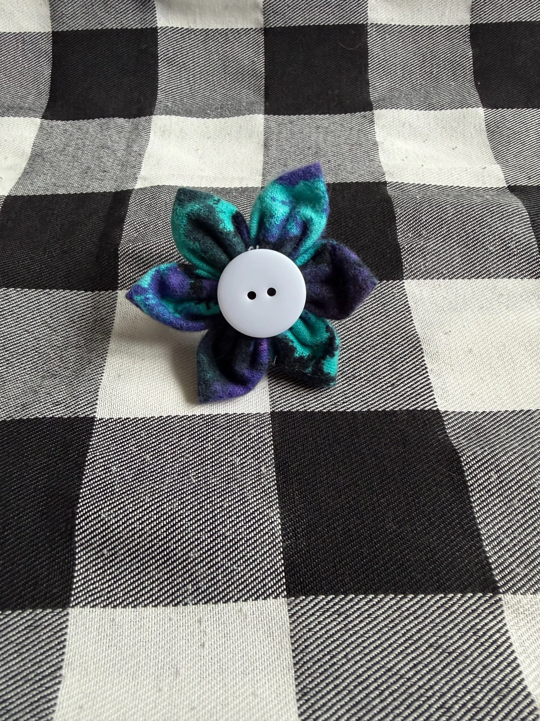 Image 1 of 1 Purple Tie Dye Flower $5.00 This flower Velcros around pets collar. Will fit around up to a 2 inch collar. The flower itself is 3 inches wide. Add To Cart Added! This flower Velcros around pets collar. Will fit around up to a 2 inch collar. The flower itself is 3 inches wide.