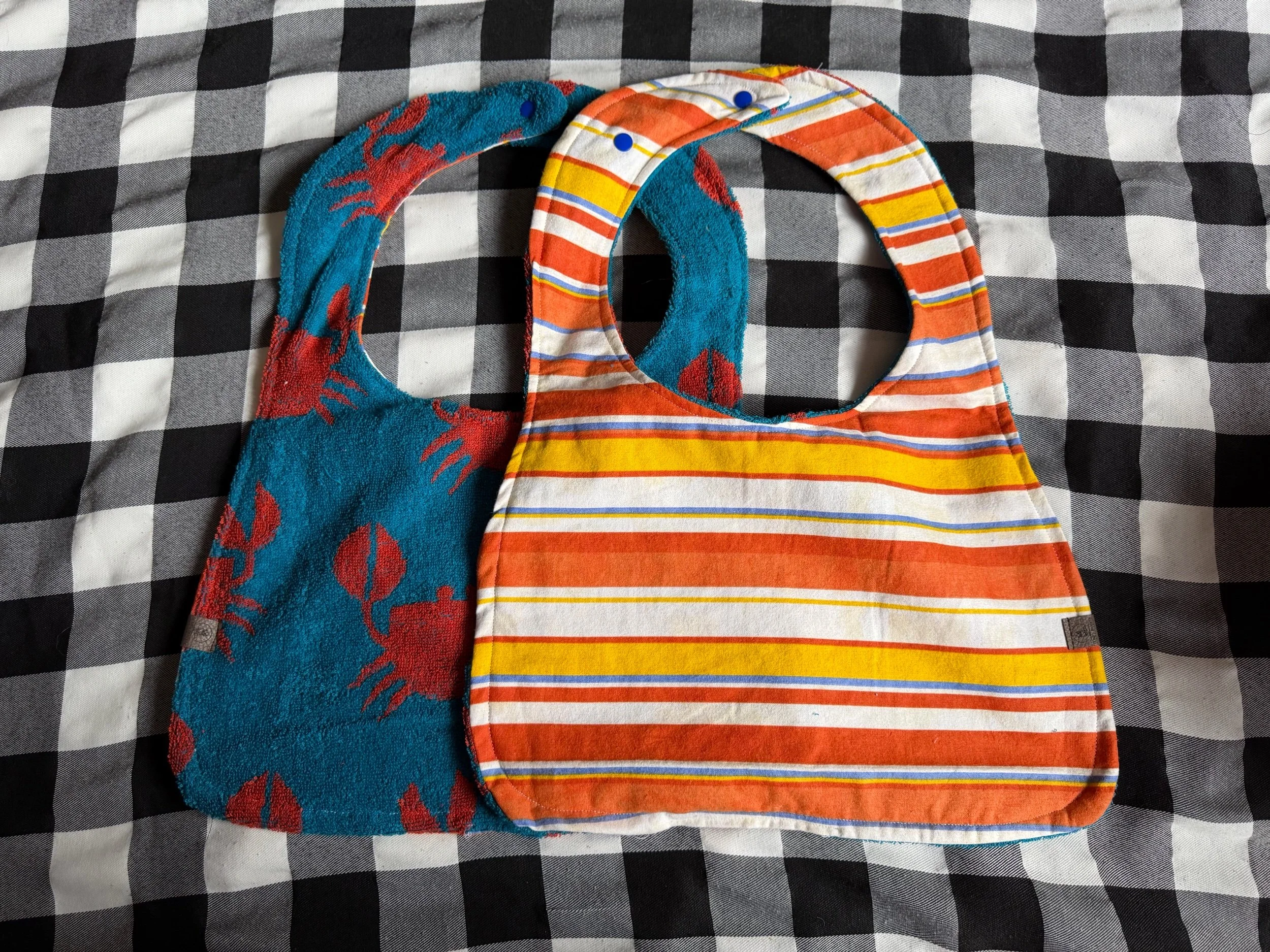 This drool bib is absorbent with one side of terry cloth and the other side of flannel fabric. The neck fits up to an approx. 33 inch neck.